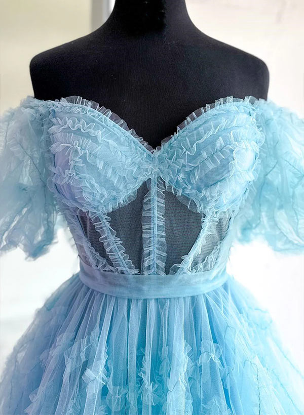 A-Line Sweetheart Short Sleeves Short/Mini Tulle Homecoming Dresses