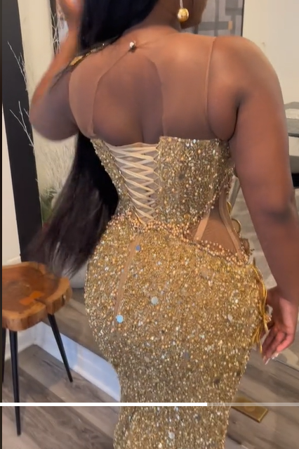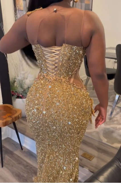 Indulge in luxury with our Gold Sleeveless Flowers Sequin Column Floor length Sparkle Prom Dresses. Exude elegance and sophistication in this stunning design, adorned with delicate flowers and sparkling sequins. Walk the floor with confidence and allure in this masterpiece that will surely make you stand out from the crowd.