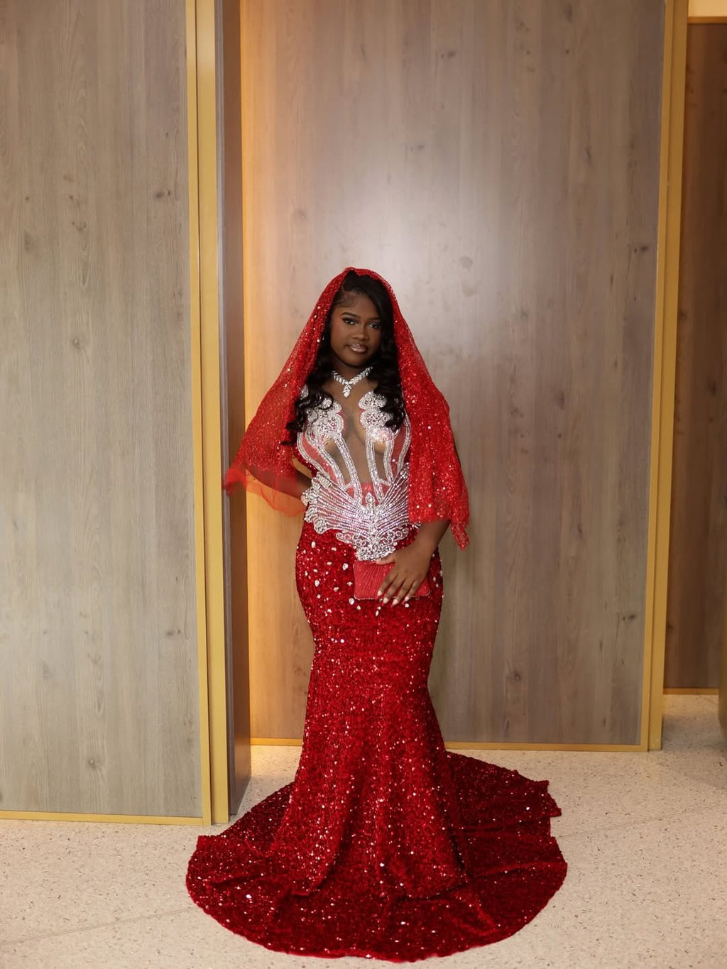 Captivate in this stunning burgundy mermaid prom dress, where luxurious sequins catch the light with every movement. The sleeveless silhouette showcases an elegant sheath design, while intricate gem embellishments add refined glamour and dimension. Perfect for those seeking a show-stopping look that balances drama with sophistication, this gown delivers red-carpet worthy elegance for your most memorable evening.