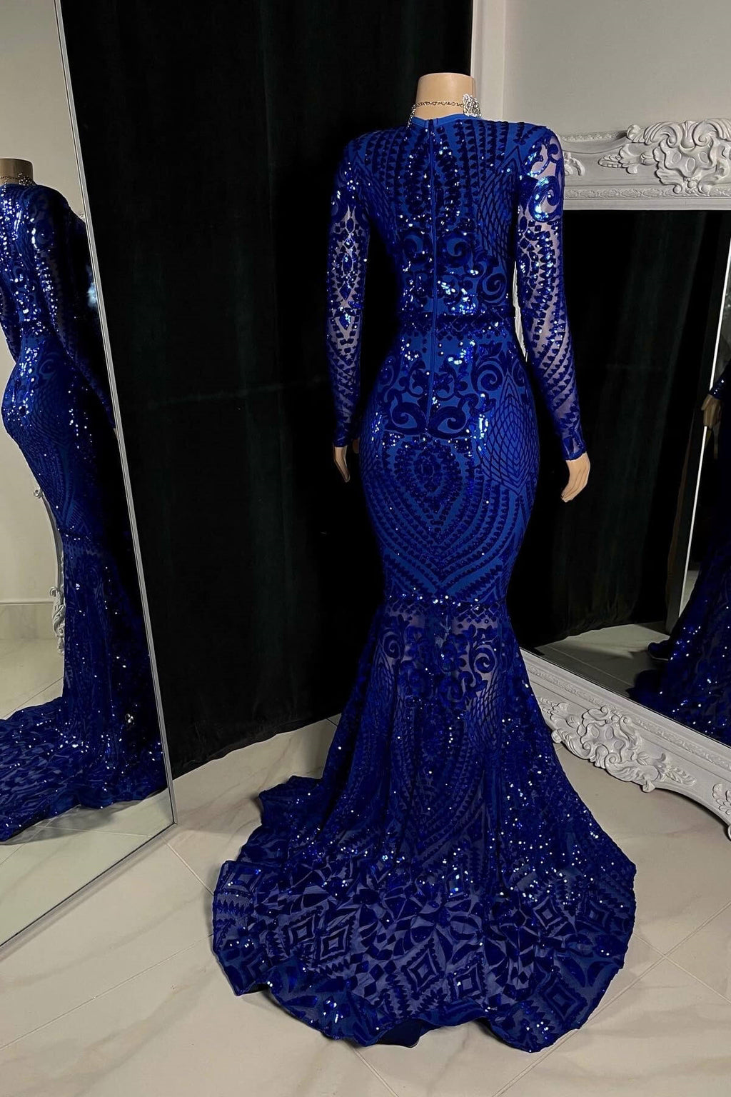 Chic V-Neck Long Sleeves Mermaid Prom Dresses Sheath Long With Zipper