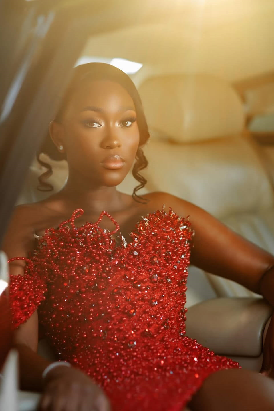 Make a stunning entrance in this dazzling red mermaid prom dress, designed to captivate. The sweetheart neckline and elegant one-shoulder silhouette create a refined, asymmetrical look that flatters the figure. Intricate beading adorns the bodice, catching light with every movement. The high split adds drama and sophistication while maintaining graceful proportions. Perfect for those seeking a show-stopping gown that balances glamour with timeless elegance.