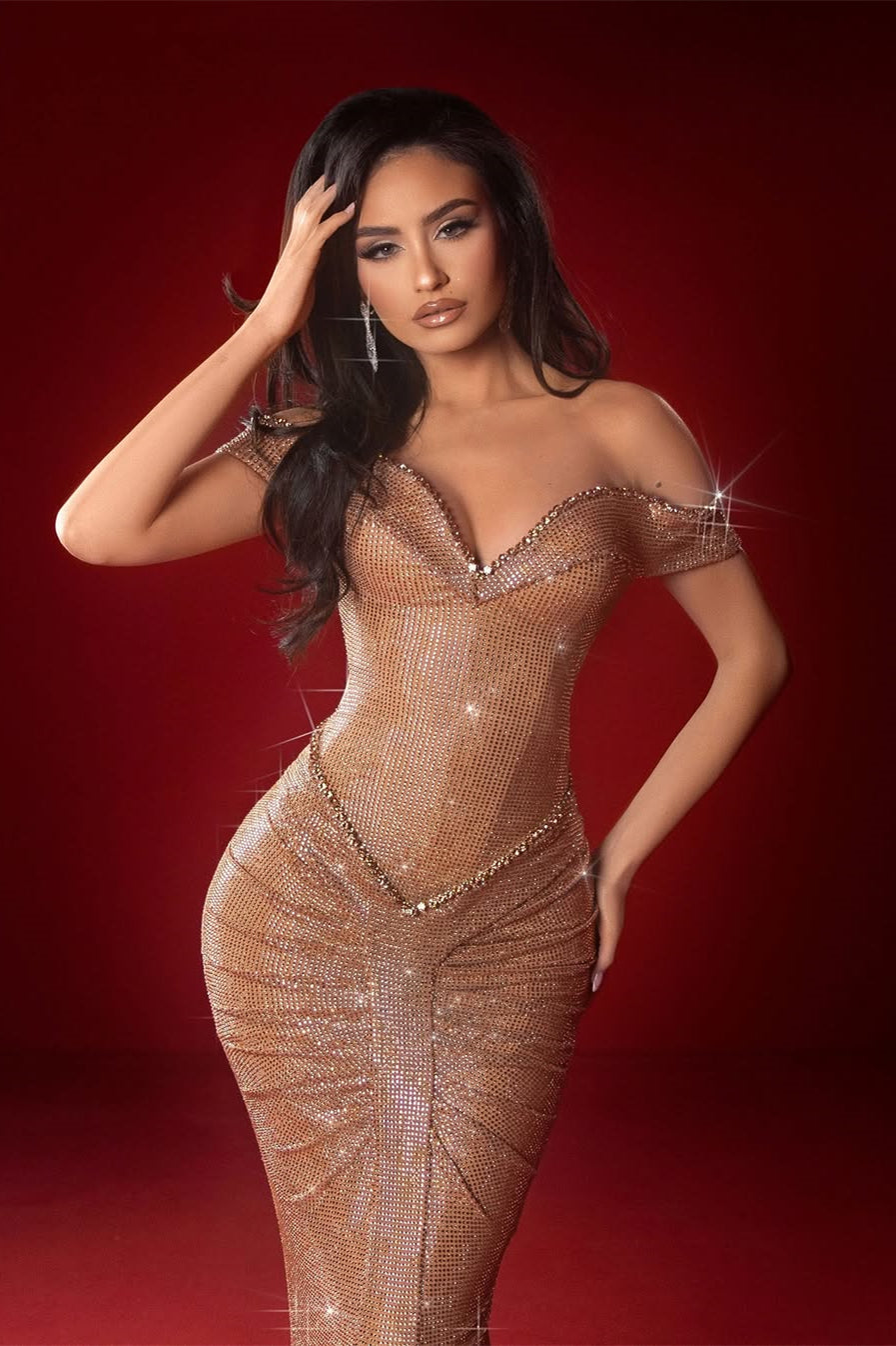 Embrace understated elegance with this sophisticated mermaid prom dress. The minimalist V-neckline and graceful off-the-shoulder design create a refined silhouette, while strategic pleating adds subtle dimension. A sheath construction hugs your curves beautifully before flowing into a dramatic mermaid hem. Delicate gem accents provide just the right touch of glamour without overwhelming the clean lines. Perfect for those who appreciate timeless style over excessive embellishment, this dress delivers poise and confidence for your most memorable evening.