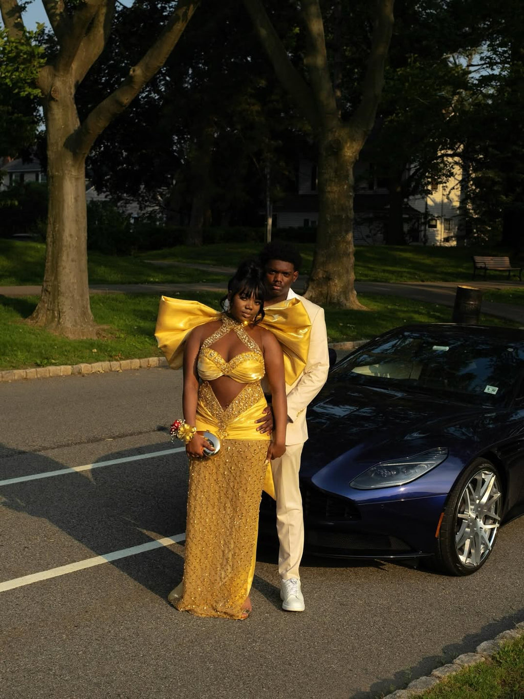 Radiant yellow halter gown featuring a sweetheart neckline and sleeveless silhouette that captures effortless elegance. The sheath cut hugs your curves gracefully, while intricate gem embellishments and a signature bow knot detail at the bodice add refined glamour. Perfect for prom, this sophisticated design combines timeless appeal with contemporary flair, ensuring you command attention with understated luxury.