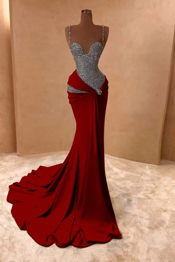 Straps Sweetheart Silver Gray Mermaid Court Train Prom Dresses