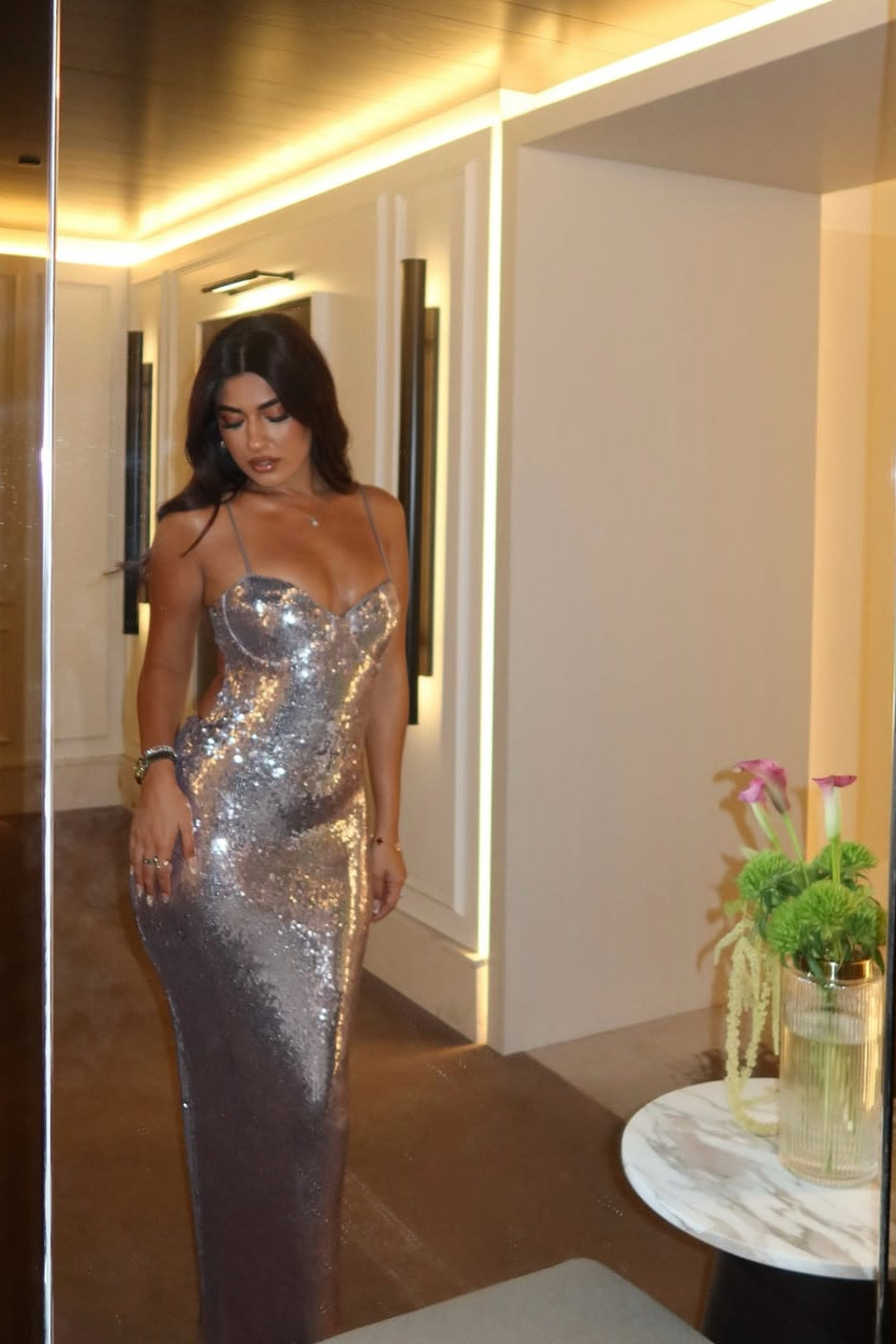Elevate your evening with this dazzling silver mermaid gown, featuring delicate spaghetti straps and a flattering sweetheart neckline. The sleeveless design offers graceful elegance, while the stylish split adds a touch of modern allure. Perfect for prom or formal occasions, this dress contours your silhouette beautifully, combining sophistication with eye-catching glamour.