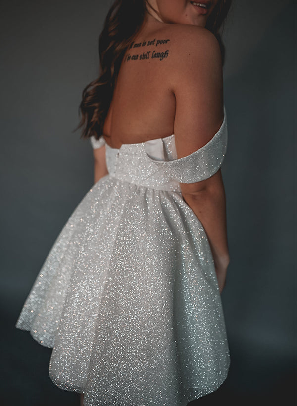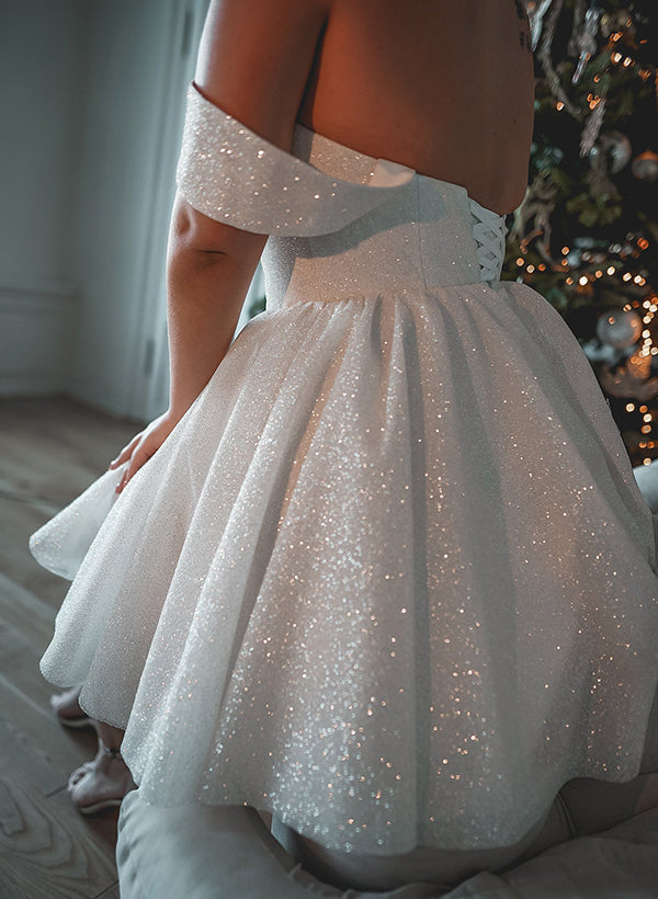 A-Line Off-The-Shoulder Knee-Length Sequined Homecoming Dresses