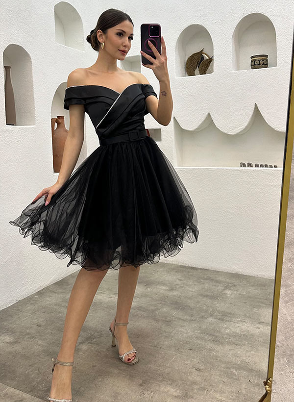 A-Line Off-The-Shoulder Sleeveless Homecoming Dresses