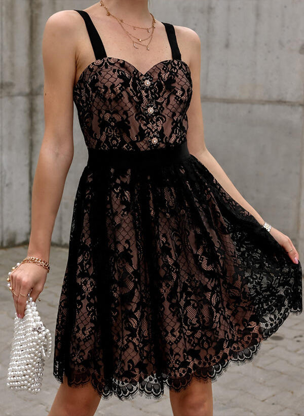 A-Line/Princess Sweetheart Lace Sleeveless Short/Mini Homecoming Dresses With Lace