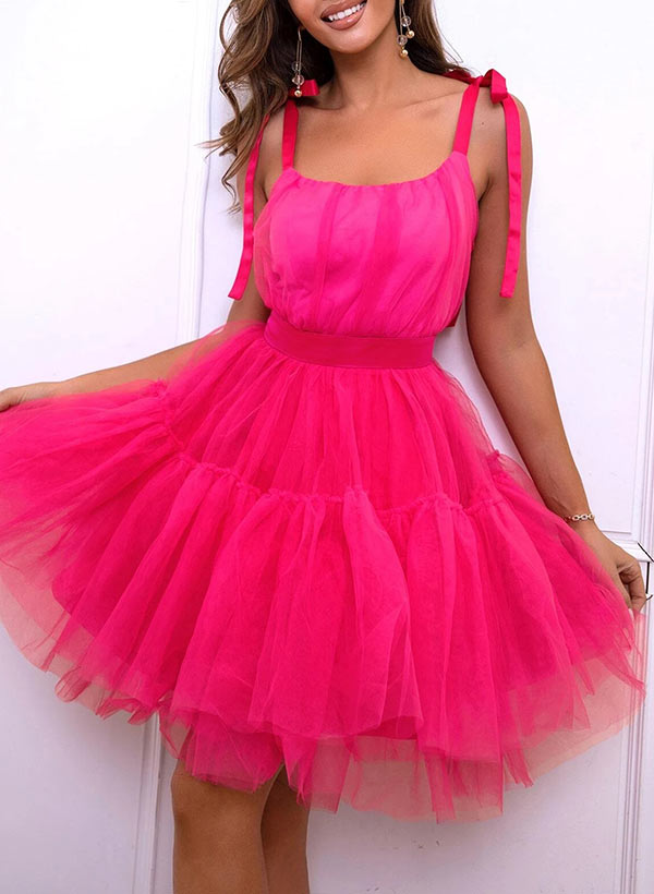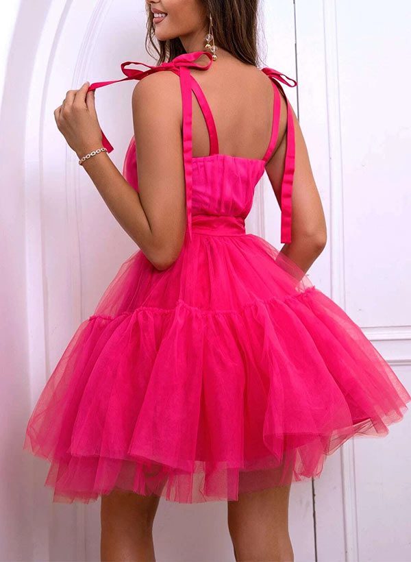 A-Line Scoop Neck Sleeveless Short/Mini Tulle Homecoming Dresses