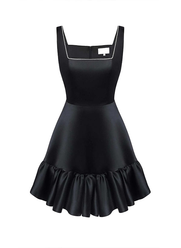 A-Line Square Neckline Sleeveless Short/Mini Satin Homecoming Dresses