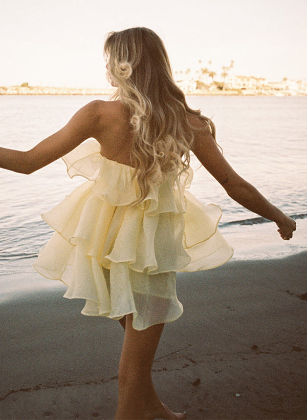 A-Line Strapless Sleeveless Short/Mini Tulle Homecoming Dresses