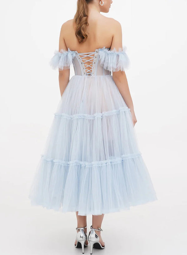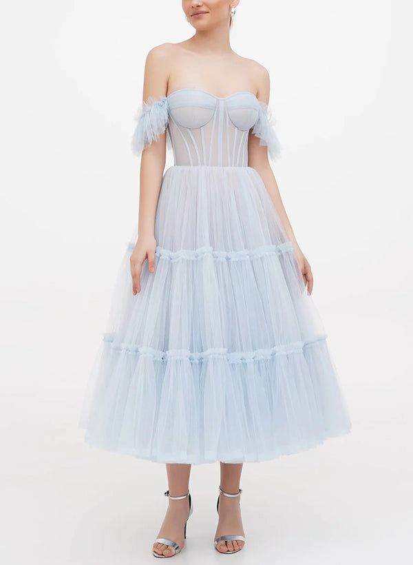 A-Line Sweetheart Sleeveless Tea-Length Tulle Homecoming Dresses