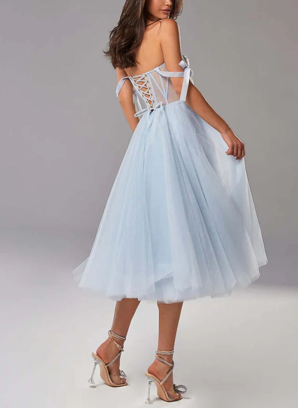 A-Line Sweetheart Sleeveless Tea-Length Tulle Homecoming Dresses