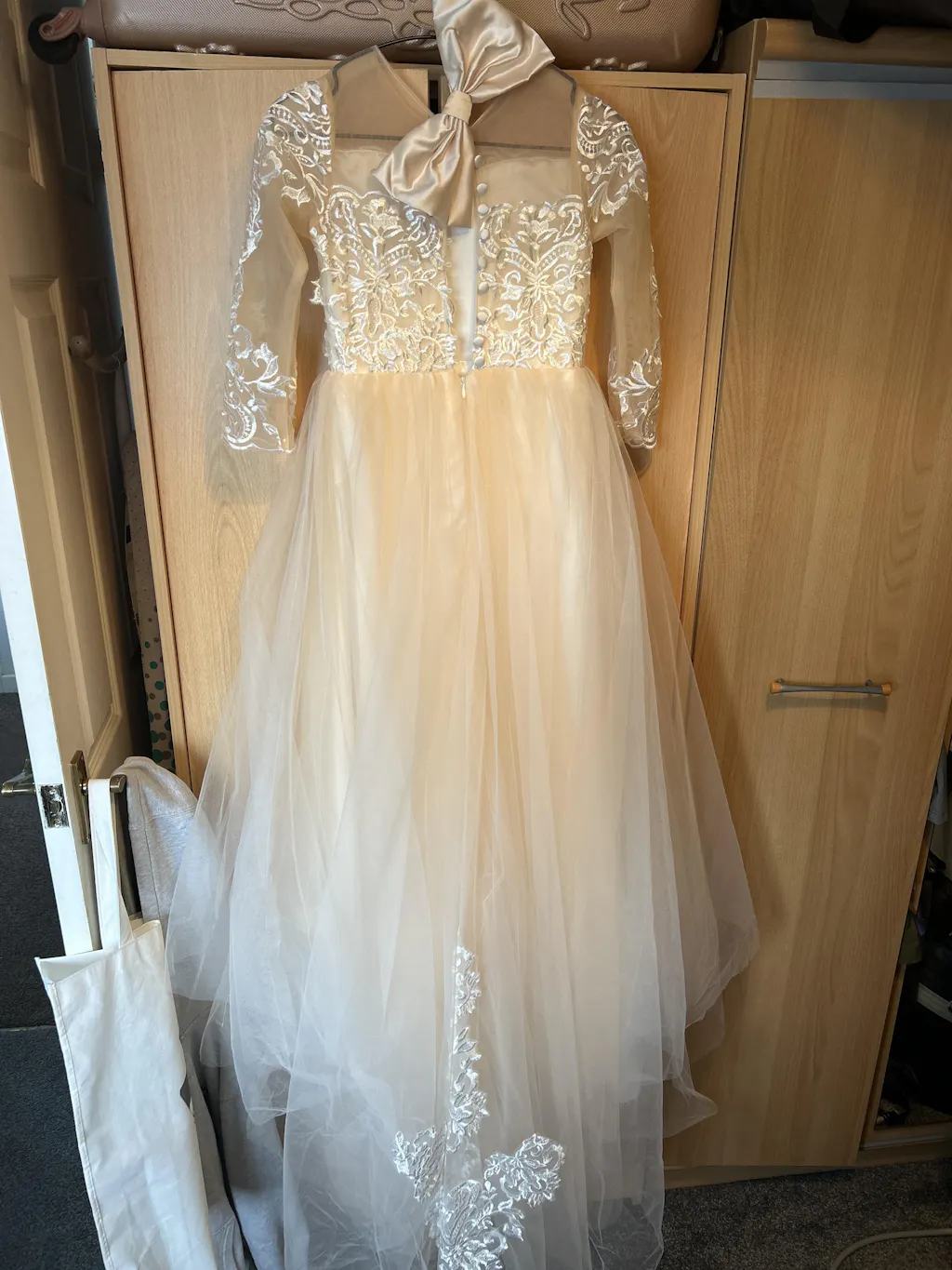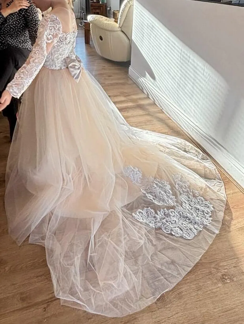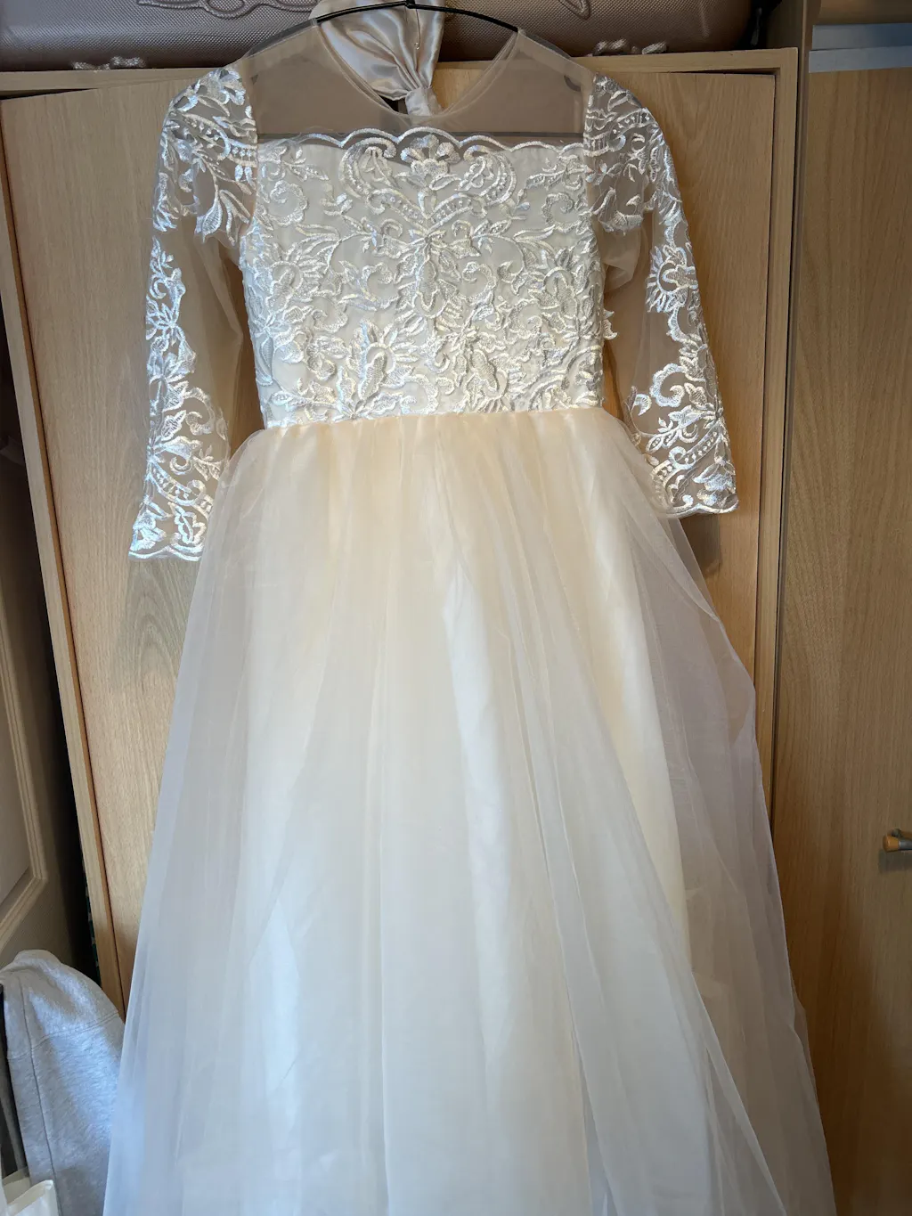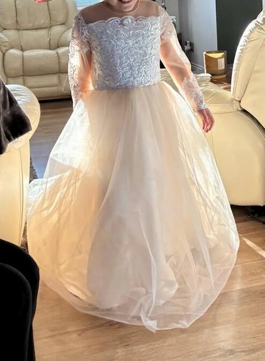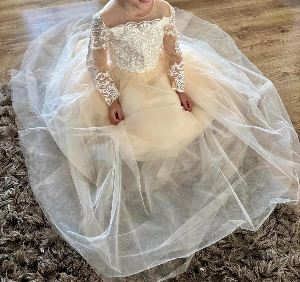 Ball Gown Long Sleeve Strapless Floor Length Tulle Applique With Back Bow Flower Girl Dress