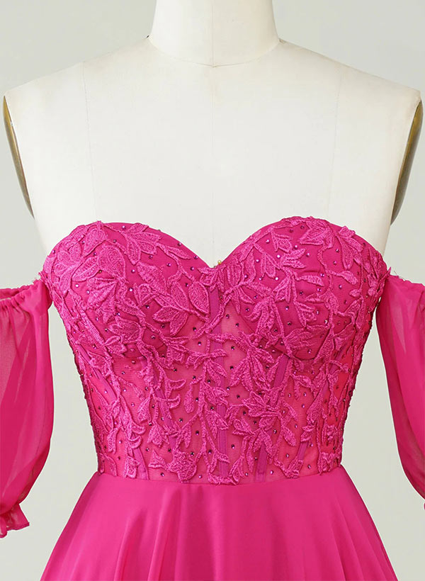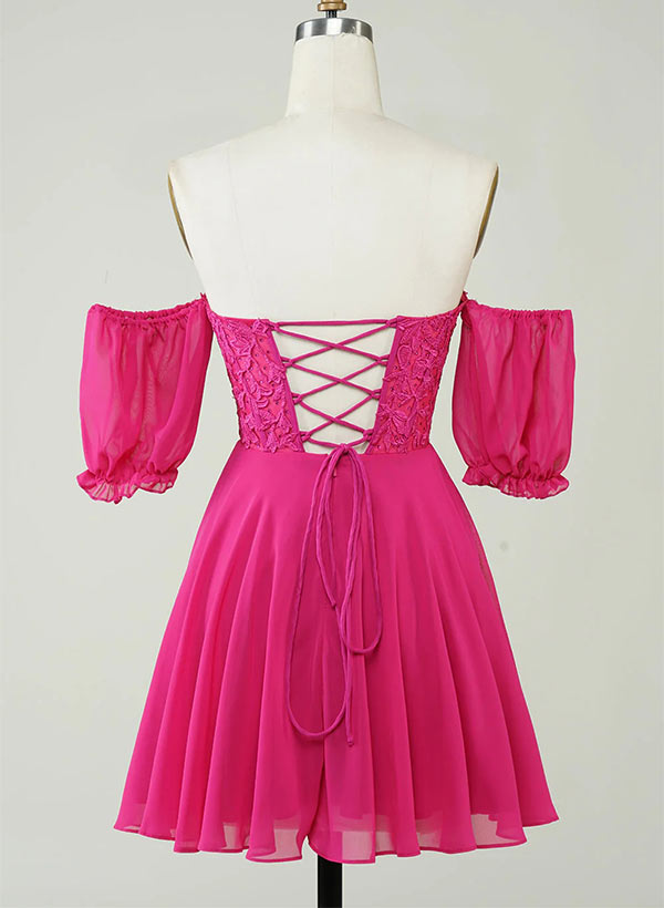 Hot Pink Sweetheart Short Sleeves Homecoming Dresses With Appliques Lace