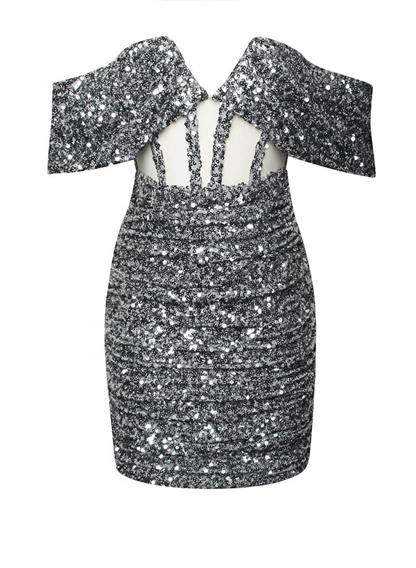 Sheath/Column Off-the-Shoulder Short/Mini Sequined Homecoming Dress