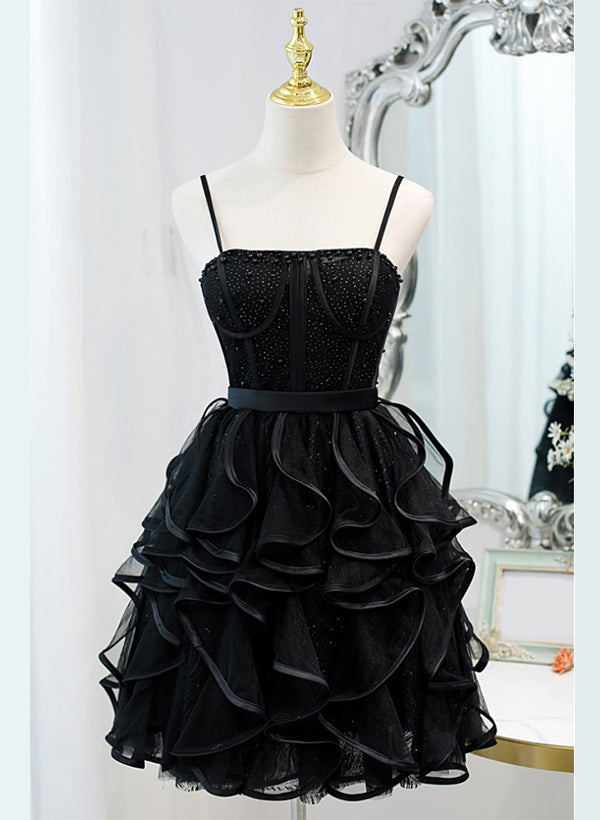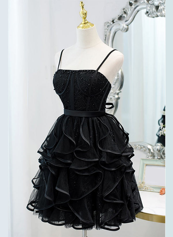 Square Neckline Short/Mini Tulle Homecoming Dresses With Cascading Ruffles