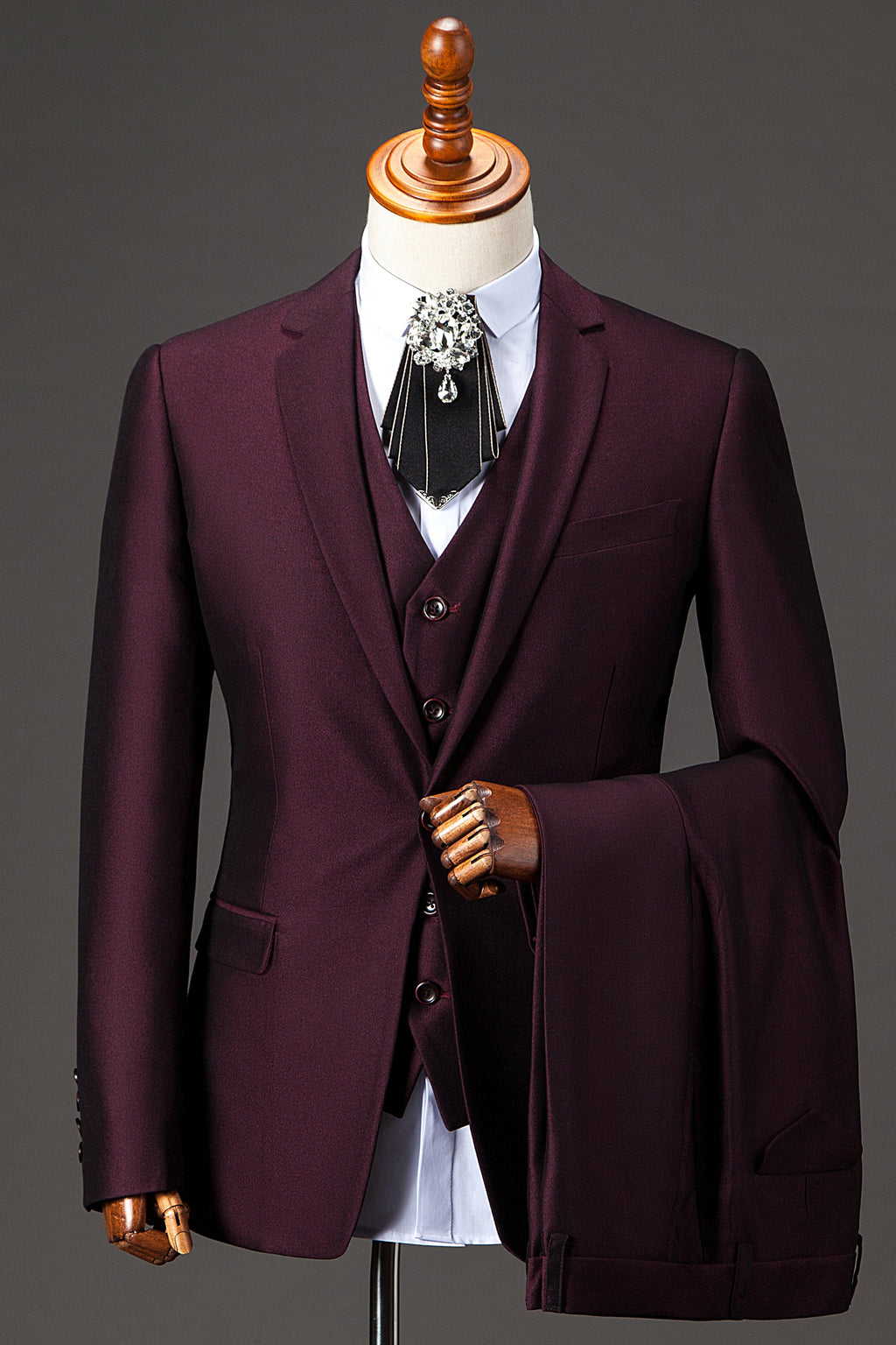 Top-Selling Men’s Business-Casual Groom’s Suit with Single Slit, Flat Collar, and Single-Breasted Closure