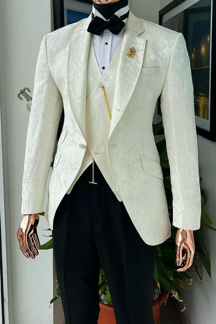 White Jacquard Wedding Suit for Groom with Waistcoat